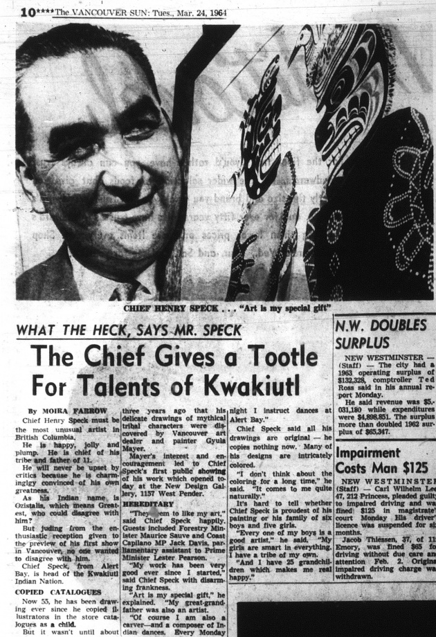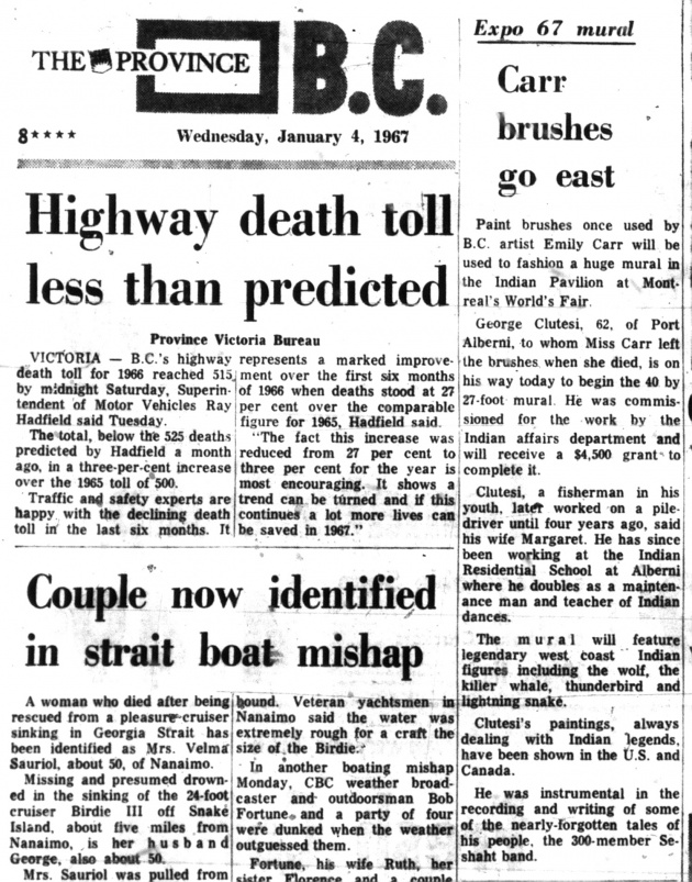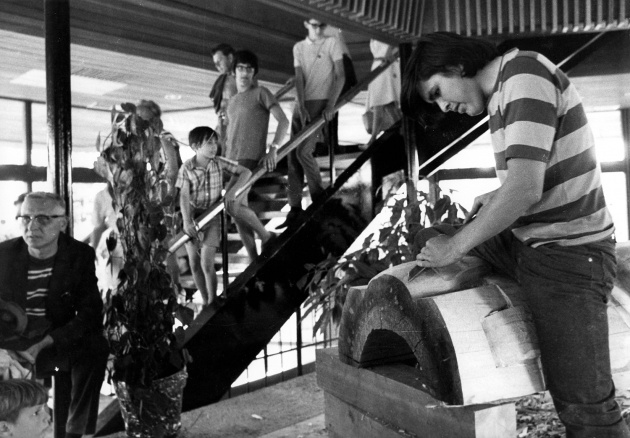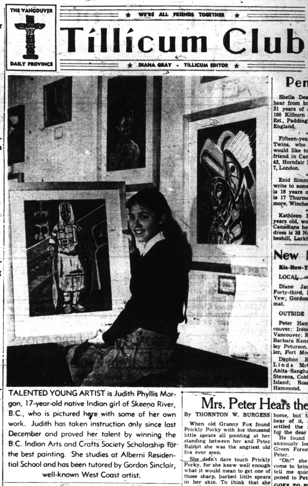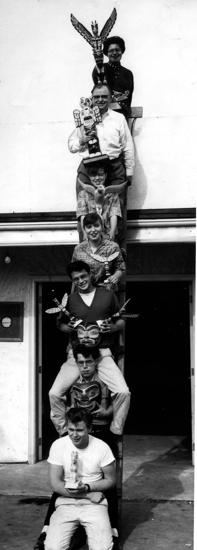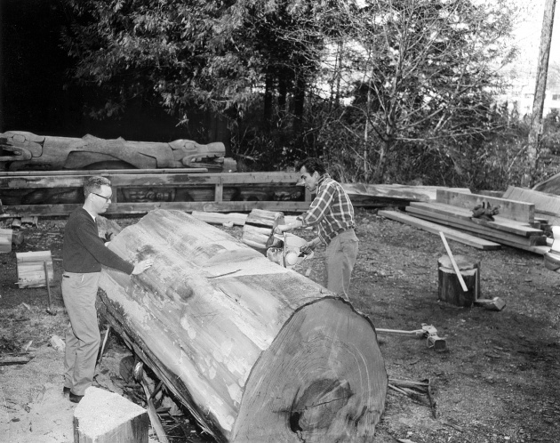 Three decades later, the 1950s tourism venture, “Totem Land,” (an organization to protect Indian Art and promote goodwill) and the 1966 “Route of the Totem,” poles erected along highways and at ferry terminals, and on-going totem pole restoration programs at the Royal British Columbia Museum and UBC Museum of Anthropology provided a renewed interest in poles. Despite the huge historical gap between these projects, the initiatives reveal a relationship between totem poles, tourism, Canadian nationalism and art. Against this more recent historical backdrop, Ellen Neel was named as ‘renowned for her totem poles’ in a display hosted by the Coqualeetza Fellowship Club at the Vancouver Art Gallery in 1954. By 1955 Neel was known as the “the most famous totem carver on the west coast” according to a tribute to her after her untimely death in 1966. Taught from childhood to carve totem poles as a skill that would allow her to make a living and maintain cultural knowledge, she was propelled into a capitalist market that eventually took her to Vancouver, where she mentored her own family as she had been. Neel became known as a leader who advocated for women, and who “worked shoulder to shoulder with men,” not only as a carver, but as a business woman who embarked on many political and cultural ventures in Vancouver with civic, provincial, institutional and aboriginal leaders. However, her bold embrace of what was ‘modern’ in terms of business, politics and art in the 1940s and 1950s would lead to her exclusion from the 1960s discourse of tradition, aesthetics and connoisseurship in Northwest coast art.