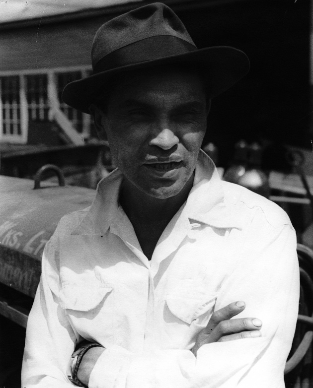 The Queens totem pole loaded on to the “;Pacific Unity” at Victoria on its voyage to England, 1958