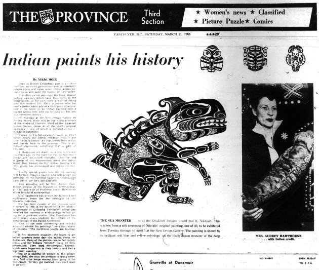In 1953 the Coqualeetza club held their first exhibition of Native arts and crafts at the Vancouver Art Gallery, which included a cross-section of artists whose rich and multi-layered lives also involved serving as artist-educators, board-members and community and political leaders. These people created a living aboriginal public identity recognized as far away as Europe, as opposed to the archival, anthropological identity that was framed by museums. Examining the activities that took place in association the social clubs has the potential to unravel existing art histories that have focused solely on Indian art production in museums and galleries.